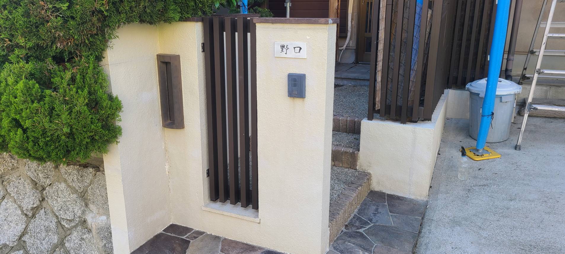 今回は手摺を溶剤シリコン塗料で雨弾きを良く、床は浸透系塗料で歩行したと時に塗膜剥がれを抑制する。そういった施工を行いました。